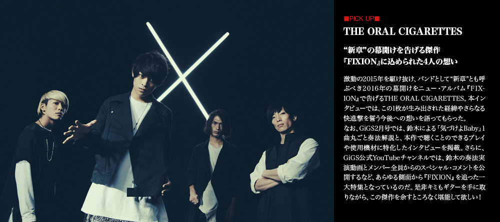 激動の2015年を駆け抜け、バンドとして“新章”とも呼ぶべき2016年の幕開けをニュー・アルバム『FIXION』で告げるTHE ORAL CIGARETTES。本インタビューでは...
