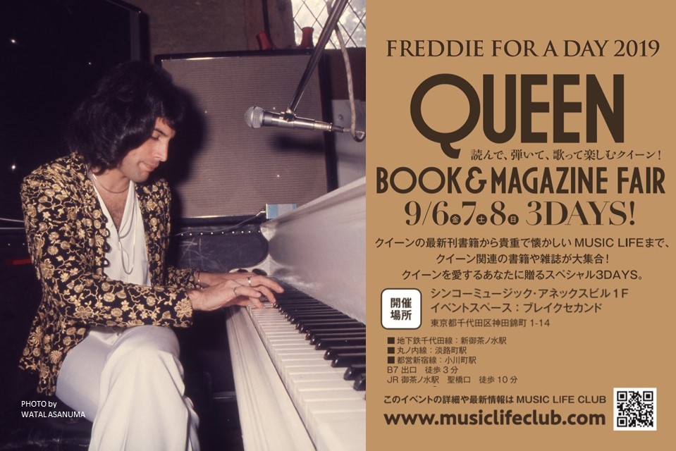 ロックジェネレーションのためのウェブマガジン発行中のミュージックライフ・クラブでは、エイズの撲滅を願い、フレディの誕生日を祝う95日の“FREDDIE FOR A DAY”を記念して、96日(金)から98()までの3日間、シンコー・ミュージックのイベントスペース“ブレイクセカンド”にて『QUEEN BOOK & MAGAZINE FAIRを開催いたします。今回も多くのクイーン関連書籍、楽譜、輸入書を大集合させ、貴重なメモラビリアの展示やトークイベントなどで、クイーンの魅力を様々な角度から紹介します。展示イベントは入場無料、トークイベントは一部有料になります。また、912日(木)には、スペシャル・イベントとして「クイーン+アダム・ランバート Live in Japan 2014」のチャリティ―上映会も決定しました。詳しくは、ミュージックライフ・クラブhttps://www.musiclifeclub.com/ にて順次発表します。ご来場お待ちしております