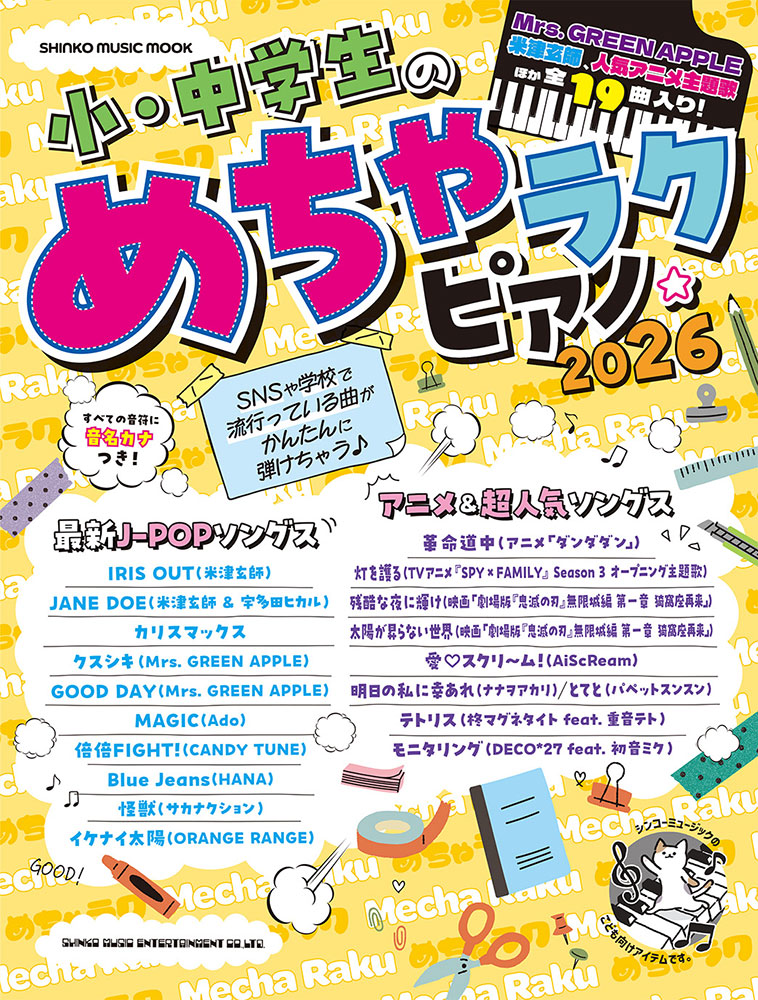 小・中学生の初級者ピアニストに向けた、最新&人気曲をやさしいアレンジで楽しめるピアノ楽譜集ムックが今年も登場!