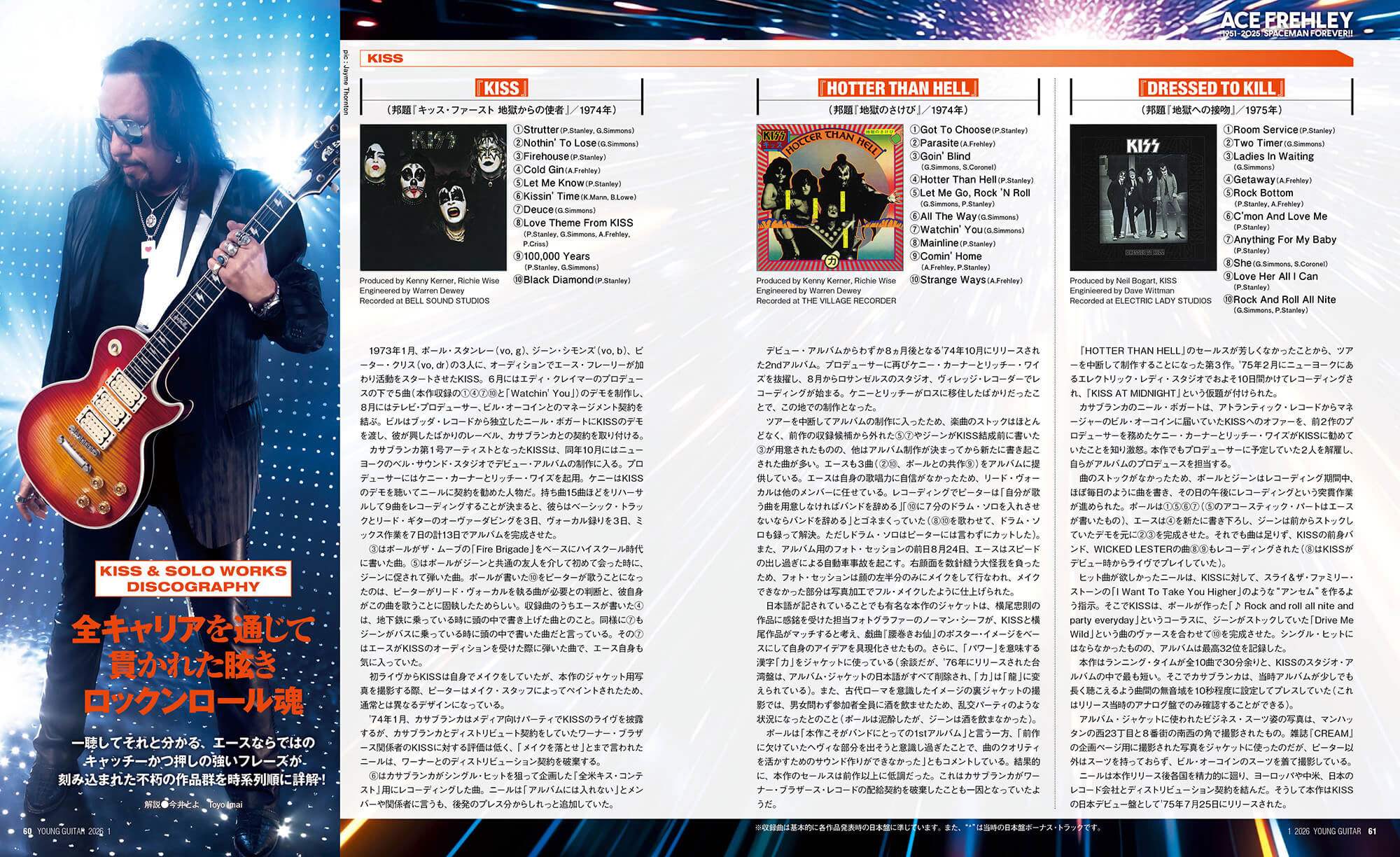 第2特集はエース・フレーリー。KISSやソロ活動を通じて世界中のロック・ファンの初期衝動を喚起し、2025年10月16日に惜しくも逝去した“スペースマン”…偉大なる求道者の軌跡を再検証!