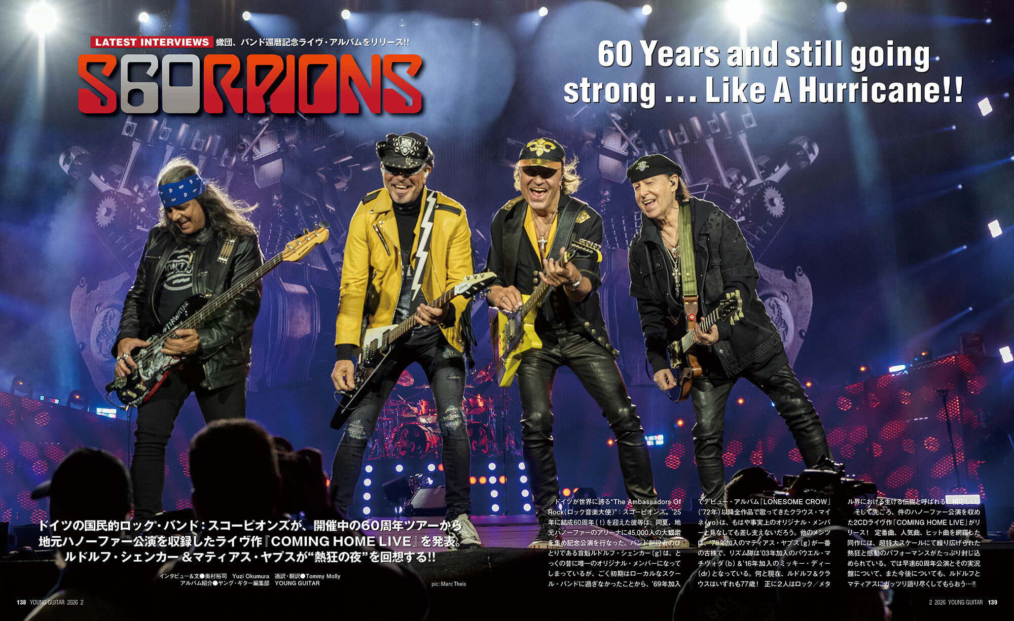 B’z『FYOP』最新ツアーのレポート&松本孝弘使用機材、60周年記念ライヴ盤を発表したスコーピオンズのルドルフ・シェンカー&マティアス・ヤプス最新インタビュー、オーペスのフレドリック・オーケソン来日インタビュー&ギター・チーム使用機材などにも注目。