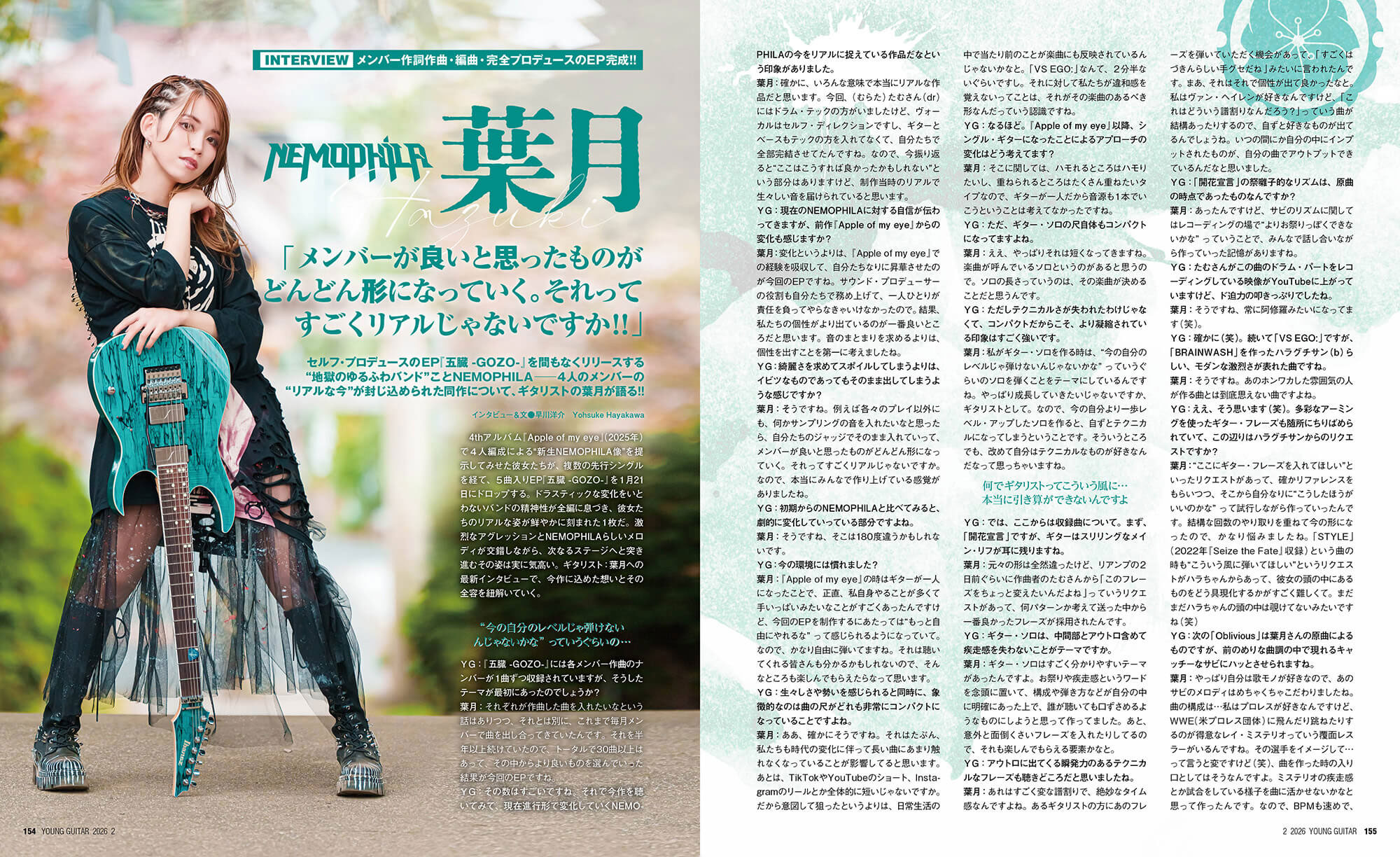 最新インタビューにはANCHANG(SEX MACHINEGUNS)、Crystal Lake feat. YD &TJ、葉月(NEMOPHILA)、HAL-CA(ASTERISM)、SAKI(ソロ)を掲載。2号連続掲載のLine 6“Helix Stadium XL Floor”特集は映像連動でお届け。