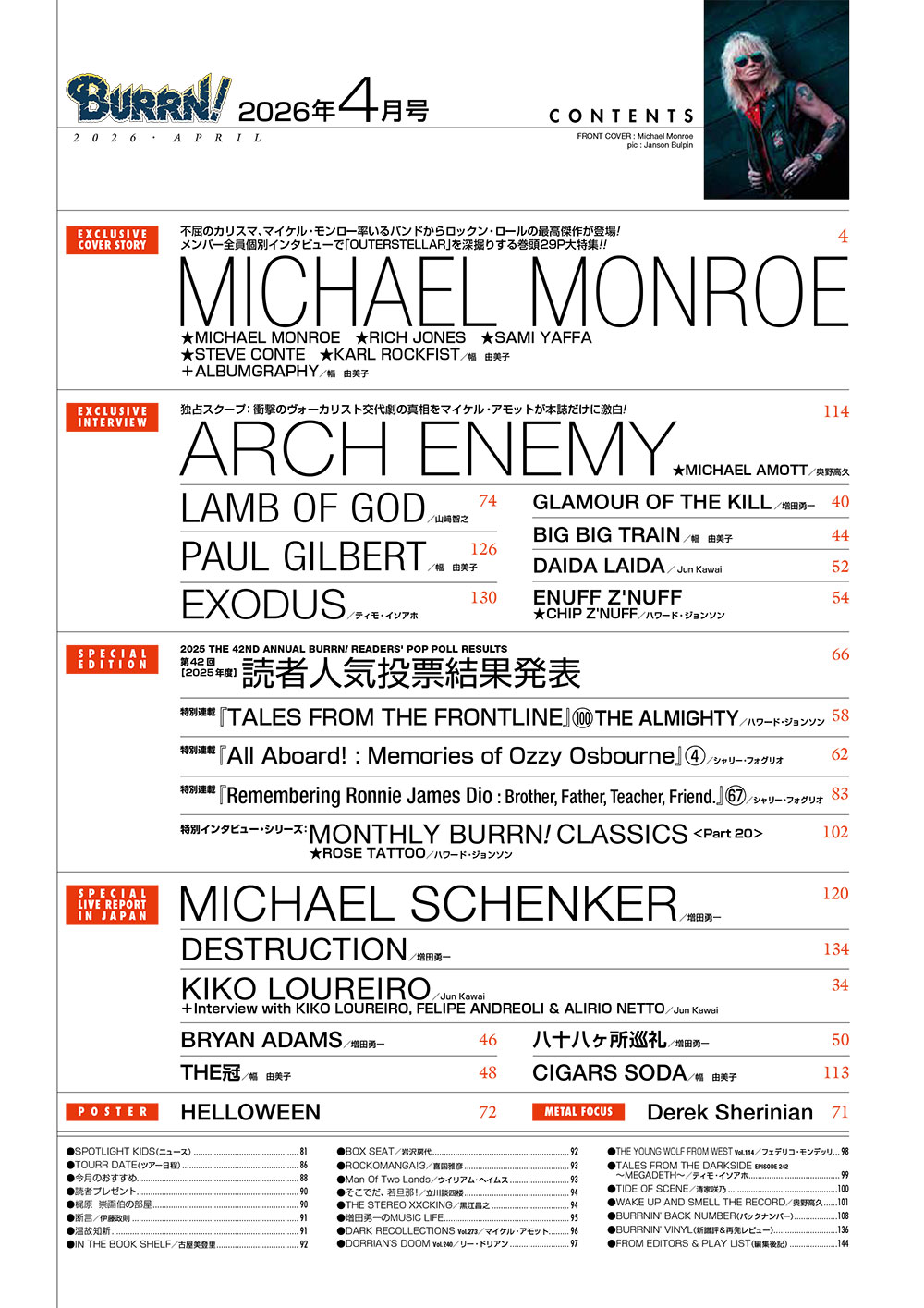 ●巻頭大特集:MICHAEL MONROE…不屈のカリスマ、マイケル・モンロー率いるバンドの新作を深掘りする徹底特集!
