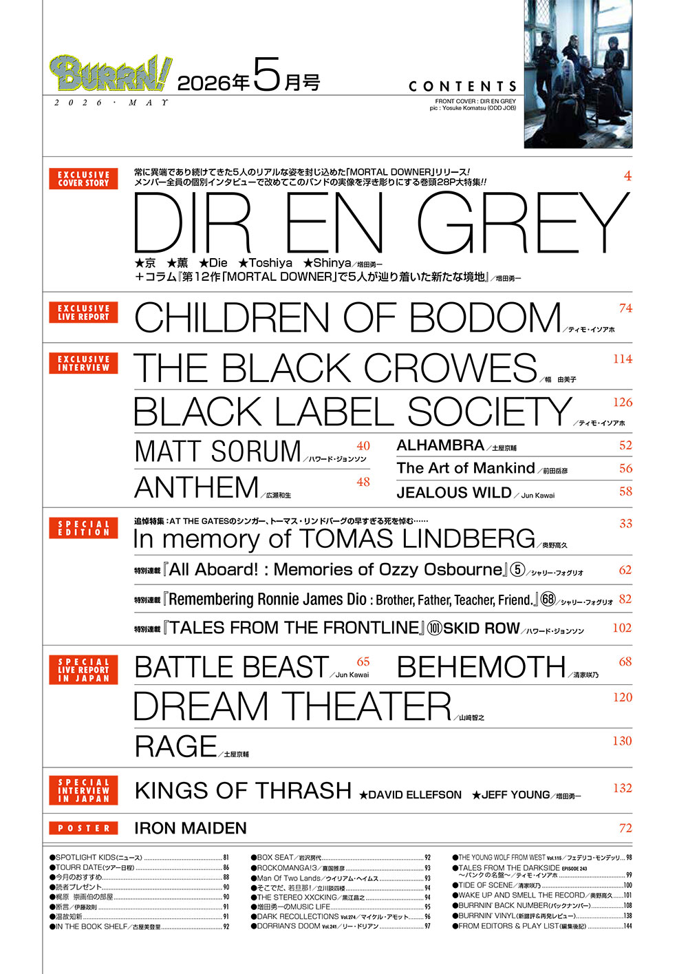 ●巻頭大特集:DIR EN GREY…5人のリアルな姿を封じ込めた新作の全貌に迫るメンバー全員個別インタビュー!